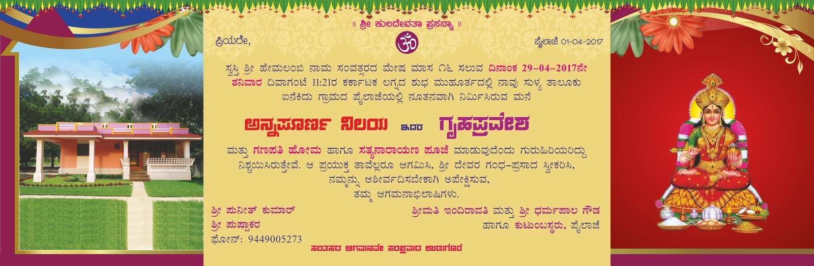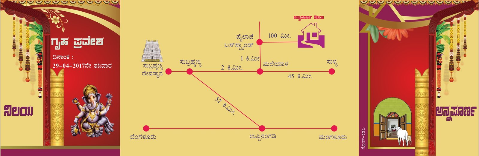 🏡 Three-Fold Gruha Pravesha Invitation – Editable CorelDRAW (CDR) File