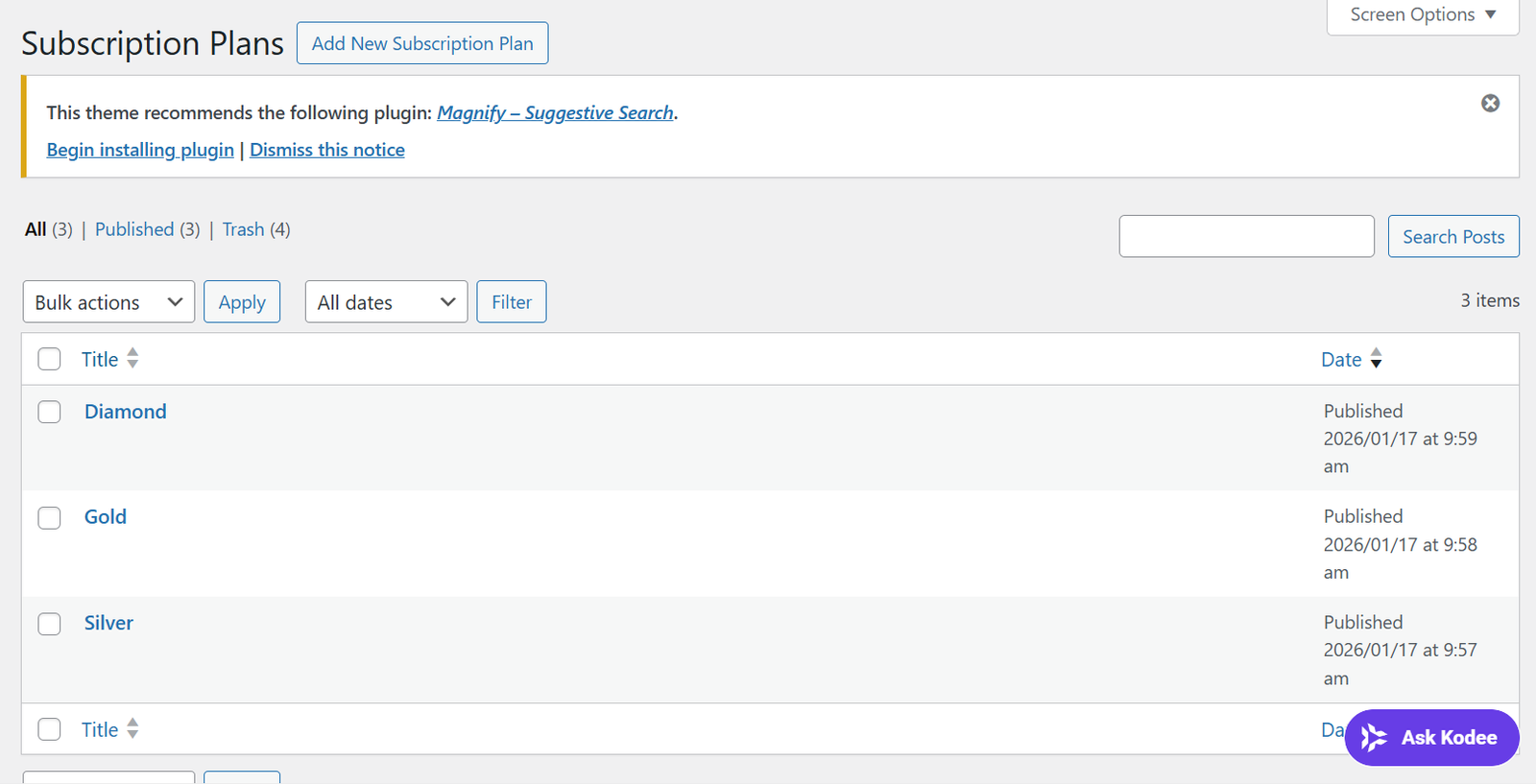Create as many plans as you need — monthly, yearly, lifetime, or custom durations.
