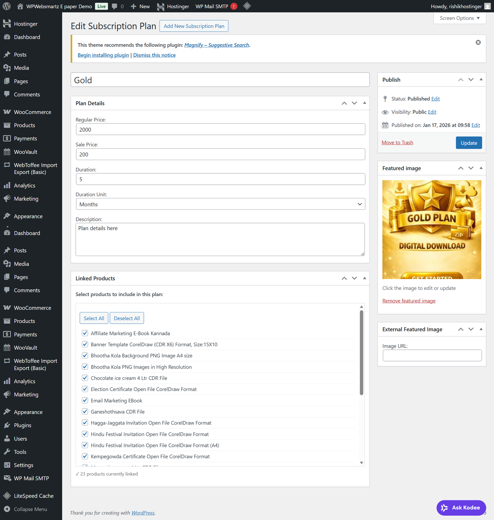 WooVault is a WooCommerce subscription plugin that allows you to create unlimited subscription plans and link them to any WooCommerce products. When customers subscribe, access is granted automatically and managed from their My Account area.
