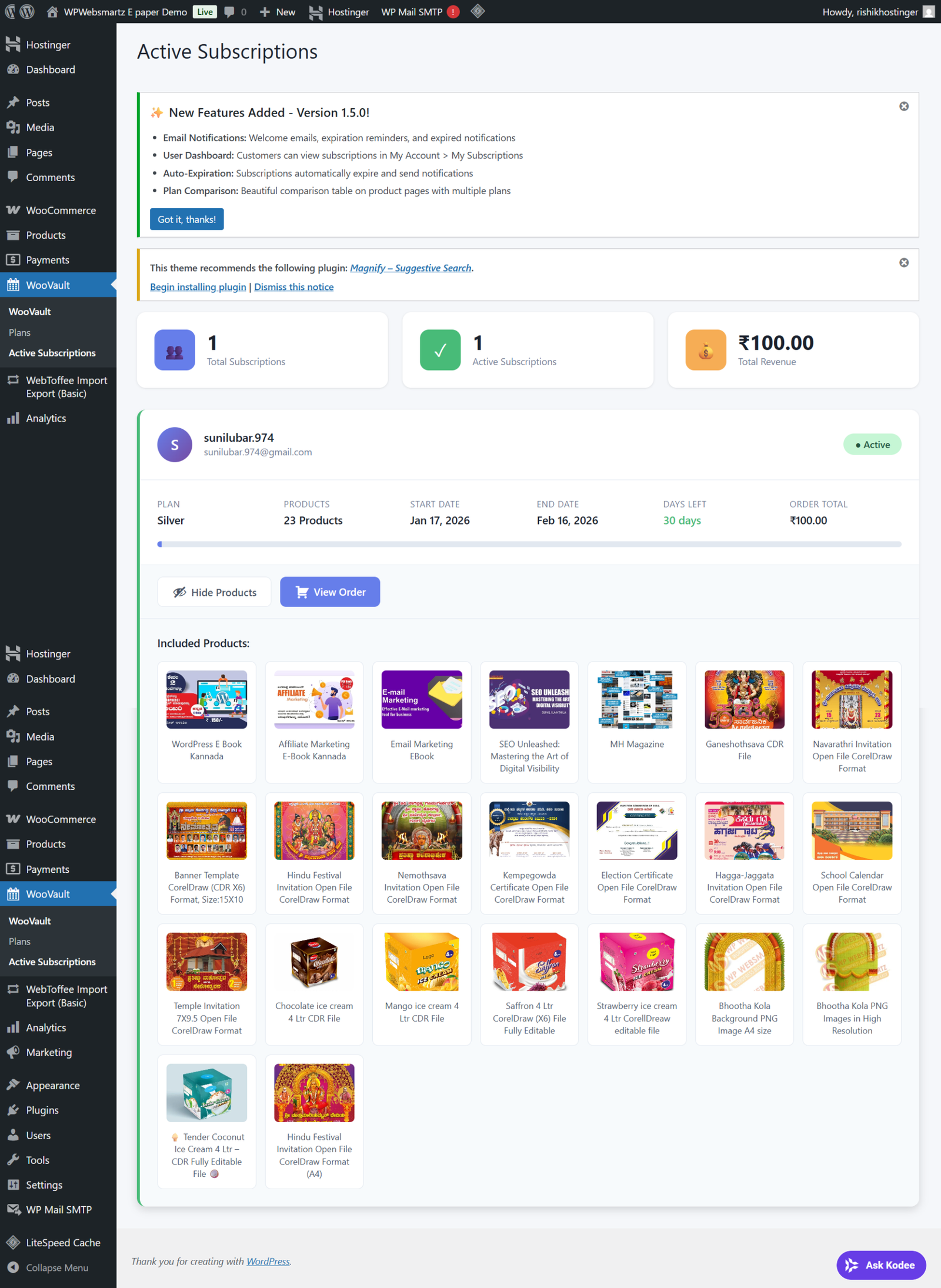 WooVault lets you create and manage powerful subscription plans in WooCommerce with a one-time payment of just $79 — no recurring license fees, no limits, no stress.